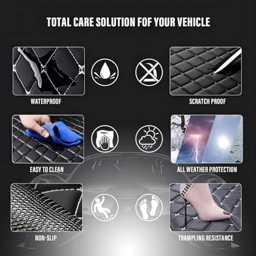 - 【Perfect Protection】The trunk mat protects your car and cargo area from dust, dirt, friction, rain, etc., it prevents the cargo from getting dirty or damaging the original trunk. Reduce the wear and tear of the original trunk mat!Precisely measured and cut to fit the car trunk without affecting the functionality of the trunk.