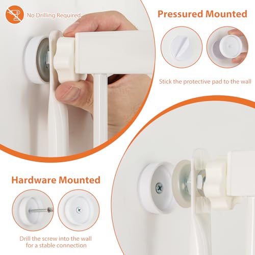 - 【2 Installation Methods】The dog gate is equipped with 4 adjustable pressure mounted kits for a no-drill installation, perfect for temporary or semi-permanent setups. Alternatively, for more permanent and stable solutions, hardware mounted kits are also provided. Warm Tips: Please do not cut off the zip ties until the installation is finished.