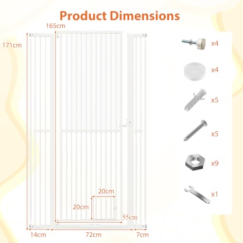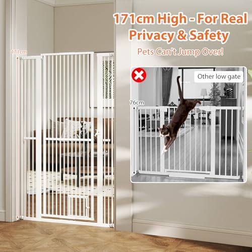- 【Extra Tall Design】In contrast to normal pet gates, our pet gate stands at a remarkable height of 171 cm, making it an ideal choice for larger pets or those fond of jumping, ensuring their safety and your peace of mind.