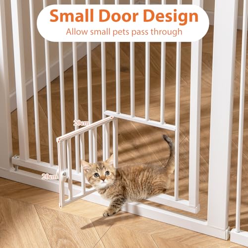 - 【Easy Access】The gate features a large main door with a safety lock that swings open from both sides, allowing for easy passage. Additionally, it includes a lockable small door at the bottom, making it convenient for smaller pets to pass through while keeping larger ones contained.