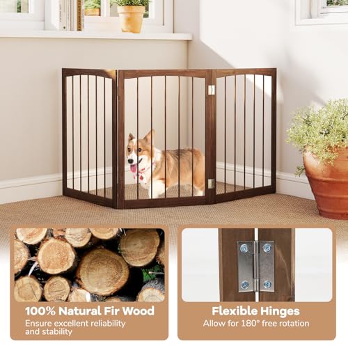 - 【Ideal Pets Protection】The thickened 3.5cm thickened wood slats and sturdy metal hinges provide secure containment for pets. Meanwhile, with a height of 76cm, this wooden dog gate is perfect for small and medium dogs.
