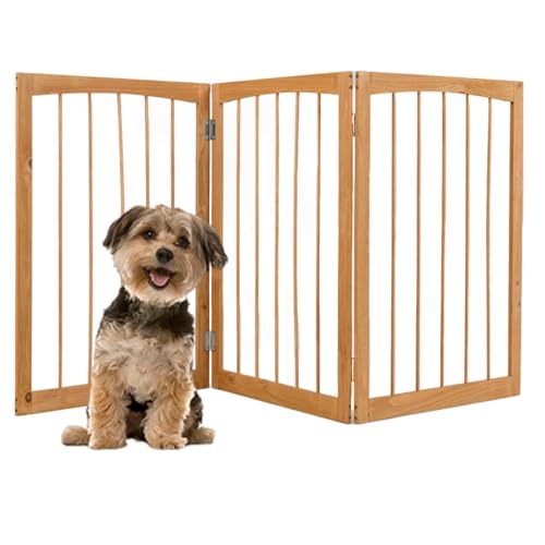 GYMAX Wooden Pet Gate, Foldable 3 Panels Stair Gate, Solid Wood Frame, 76cm High Freestanding Safety Doorway Dog Barrier (Natural, 76 cm Tall)