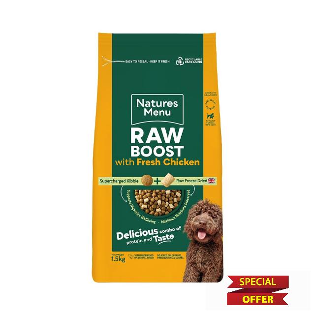 Natures Menu Raw boost Dry Food for Dogs with Fresh Chicken – 1,5kg