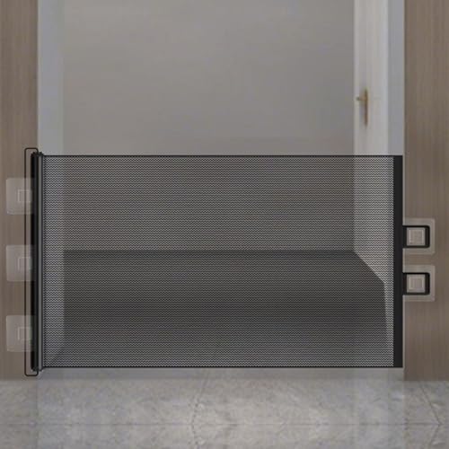Secure your home effortlessly with the retractable dog gate, featuring a no-drill installation process and adjustable sizing for maximum flexibility. This childproof solution works perfectly at staircases, doorways, hallways, or terraces. Its mesh construction functions as a fence or cat baffle, blending well with indoor spaces like bedrooms, kitchens, patios, and driveways. Ideal for protecting pets and babies around fireplaces, pools, and other high-traffic zones without compromising on style or function.
