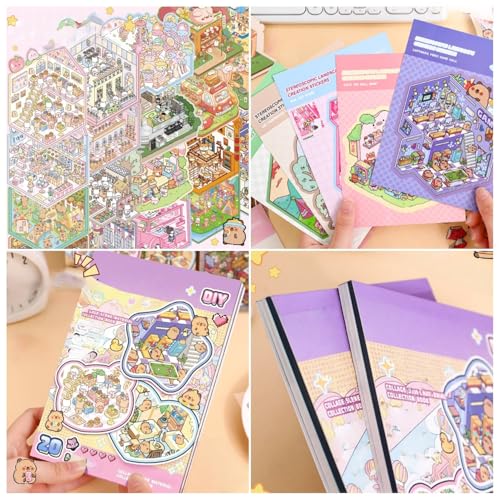 20 Sets DIY 3D Stickers Scenes Book,Cartoon 3D House Sticker Make Your Own Mini Supermarket Flower Shop Sushi Branch Amusement Park Therapy for Adult Relief Stress Pass The Time