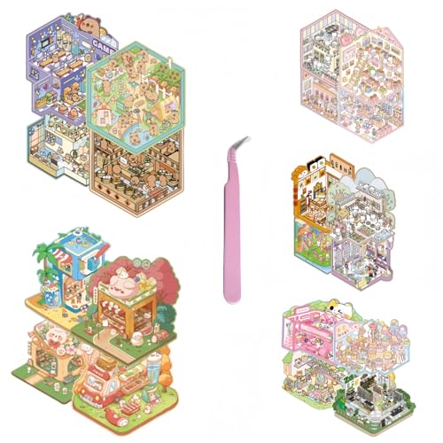 - Creative DIY 3D House Stickers:The 3D stickers scenes book package includes:Stickers 20 Set,Background board and Tweezer.House Stickers have Variety of scenic backgrounds,you have the freedom to rearrange to your imagination and style.