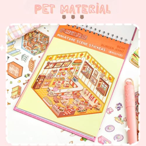 20 Sets of 3D DIY House Stickers with Tweezer,Kawaii 3D Sticker Scenes Collection Book Make Your Own Cartoon Mini Shop Cake Burger Coffee Shop for Adult Kids Relief Stress Pass The Time
