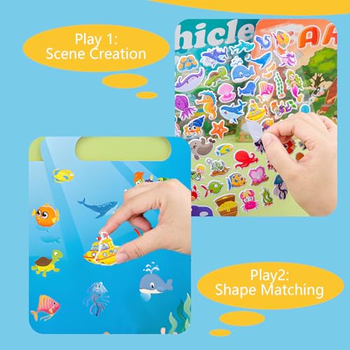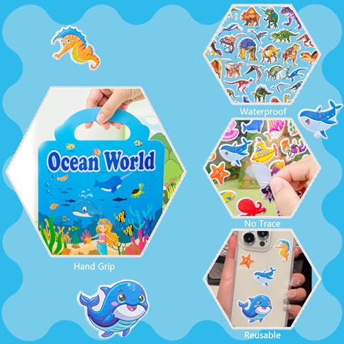 - Durable & Reusable: Made from high-quality PVC, these reusable stickers are waterproof, tear-resistant, and perfect for little hands. The reusable sticker book design allows for countless uses without losing stickiness. The handy carry handle makes it easy to take these toddler sticker books 1–2 years anywhere, while the wipe-clean surface ensures they stay fresh and ready for the next play session.