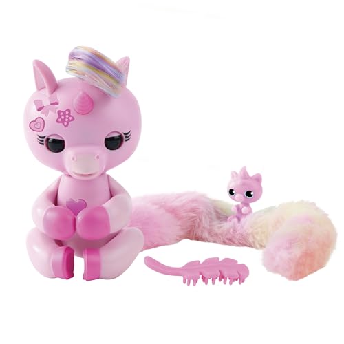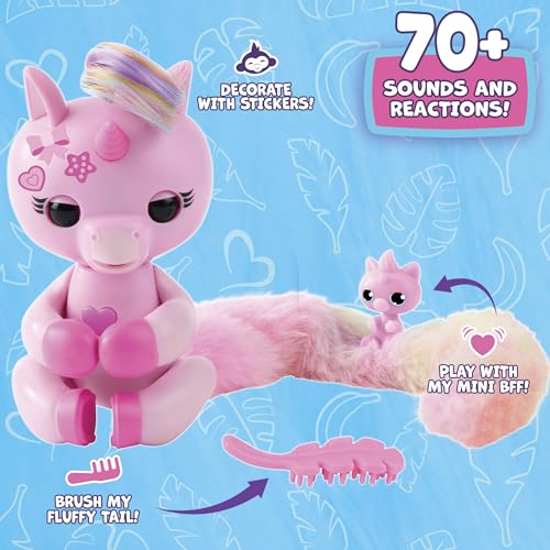 Fingerlings Snuggle Tails – Interactive Pink Unicorn (Evie), with fluffy tail, mini bestie (Isla), brush and stickers