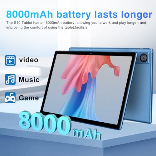 - 【10-inch Screen and 8000 mAh 】The S10 features an intelligent 10-inch IPS screen, which effectively enhances screen sensitivity and touch comfort. Provides clear, rich colors in different environments and filters blue light. The tablet features 5MP + 8MP front and rear cameras for video calls with family, friends and colleagues. The 8000 mAh provides enough power to run the tablet