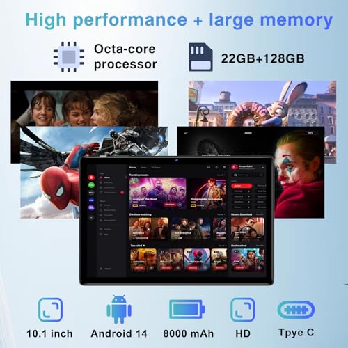 - 【Latest Android 14 System】The tablet is equipped with the latest Android 14 system, which is fast and offers great compatibility. The system fully protects users' privacy. You can customize desktop themes, text styles and App icons, and add widgets like clock, weather and calendar. Android 14 brings you new features such as multi-user, multi-window, split screen and parental control