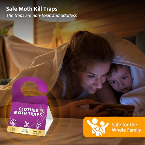 - Safe Moth Kill Traps: The traps are non-toxic and odorless, meaning you can place them anywhere around you with complete peace of mind, including in closets, underneath dressers, inside drawers, or in cabinets where clothes are stored. Pheromone traps are more suitable for pets and children than traditional products