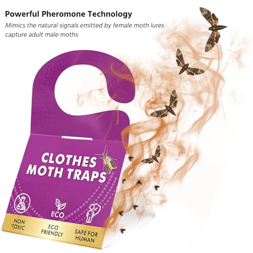- Pheromone Moth Traps: Each trap features pheromone technology and extra-strong glue, mimics the natural signals emitted by female moth lures captures adult male moths, and completely ends their reproductive cycle, is your best defense against moths in your closet, or wardrobe, and other textile storage spaces