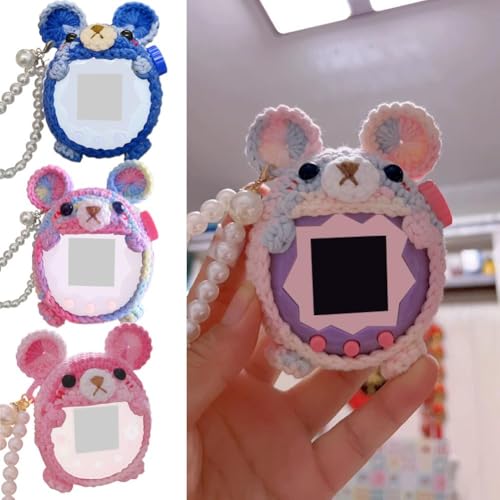 Protective Case for Tamagotchi Paradise, Cute Protective Cover, Handmade Wool Colorful Bear Cover with Screen Protector and Wrist Strap