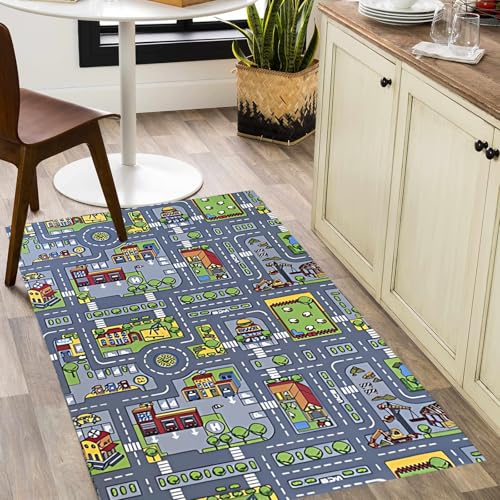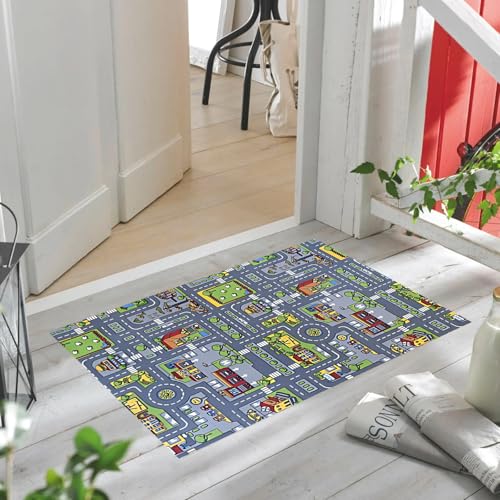 QhgPnt Car Mat for Children, Road Mat for Toy Cars, Non-Slip Road Mats for Toy Cars, Funny Car Play Mats for Kids, Non-Slip Car Rug play mat, City Car Road Interactive Game,50 * 80CM