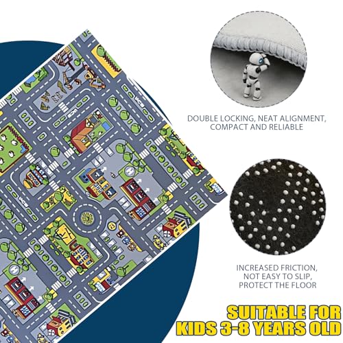 - 【Interactive Play Carpet】: Designed for toddlers aged 1-6, this car play mat provides a fun and educational surface for toy cars; The vibrant road designs and city scenes encourage imaginative play and spatial cognition development.