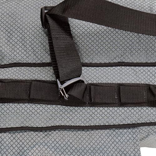 Based on our highly successful Double Quiver, the Competition Quiver takes things to the next level. Every angler packs their quiver differently, with varying numbers of rods, tripods and other accessories. In the past, this has made holdalls unbalanced. We’ve placed strategic molle loops across the top and bottom of the spine of the quiver; this allows you to adjust the shoulder strap to change the balancing point for more comfortable wear. You can adjust the handle on those points, giving you a customisable way to carry your rods, tripod, and shelter.
