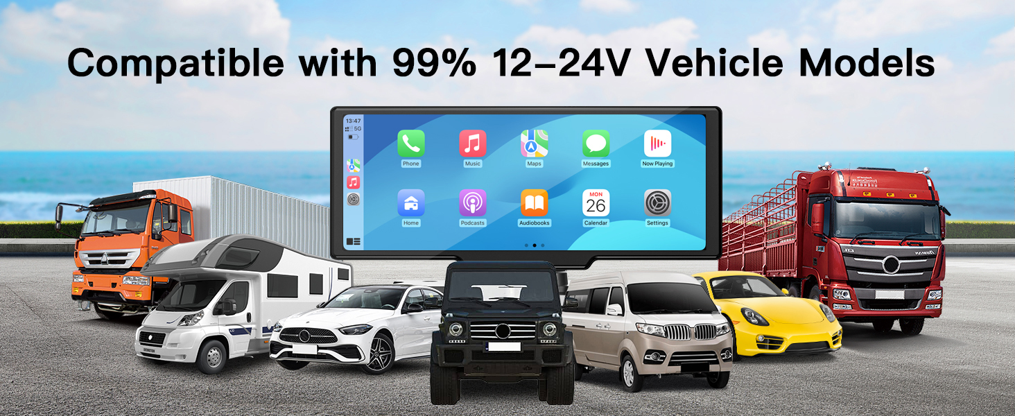 - 【Add Apple CarPlay to Any Car】This carplay head unit, compatible with Car Play and Android Auto, is suitable for various vehicles with a voltage range of 12-32V, including sedans, trucks, and RVs. Its installation is very simple, just plug into the cigarette lighter socket. We offer a variety of brackets: suction cup and self-adhesive that ensure you can choose the installation location, bringing greater convenience to your CarPlay.