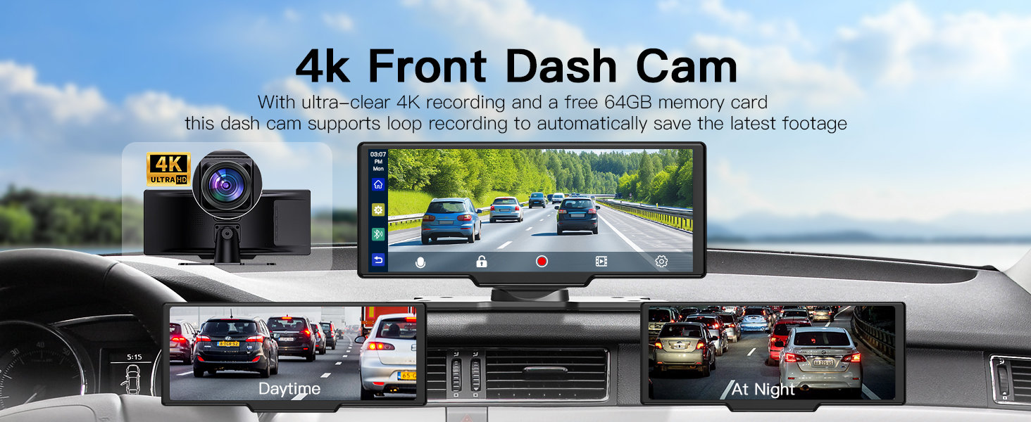 - 4K Dash Cam: Features WDR and G-Sensor for enhanced video quality and safety.