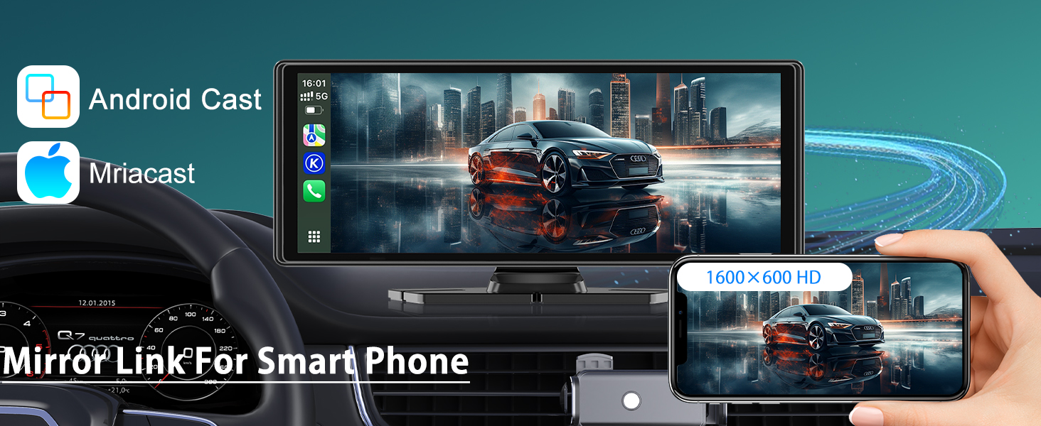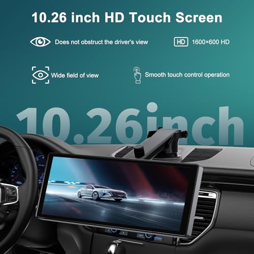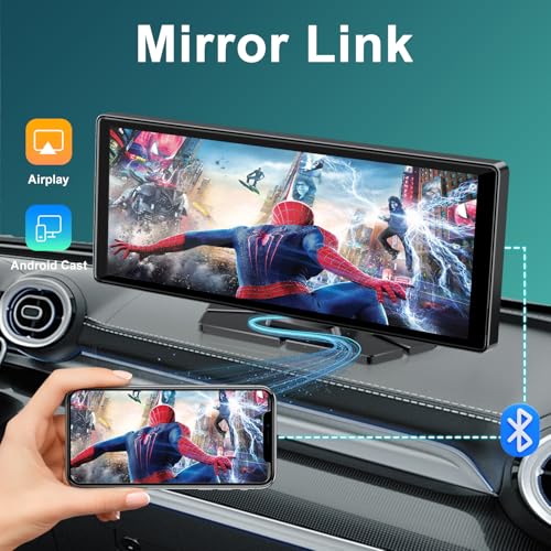 - 【Screen Mirroring】: for iPhone (AirPlay)/Android (Miracast). Connect your mobile phone to the car play screen via Bluetooth/Wi-Fi. Watch videos, view maps or browse apps on the 10.26-inch HD display when parked!