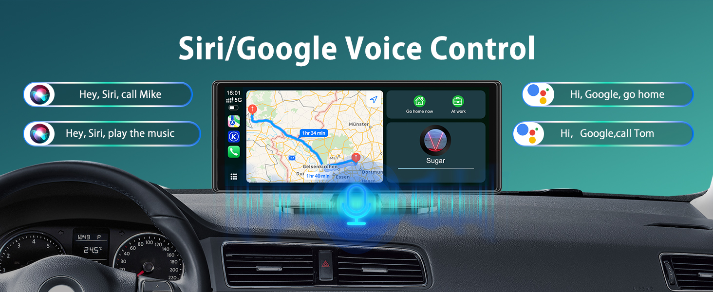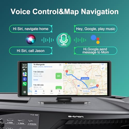 - 【Voice Control + Real-Time Navigation for Apple CarPlay】 Shout “Siri/G-oogle” to activate map navigation, get live traffic updates, and automatically reroute around congestion—no manual operation needed, so you can stay focused on the road. (Note: No built-in GPS; use via Bluetooth connection to CarPlay screen.)