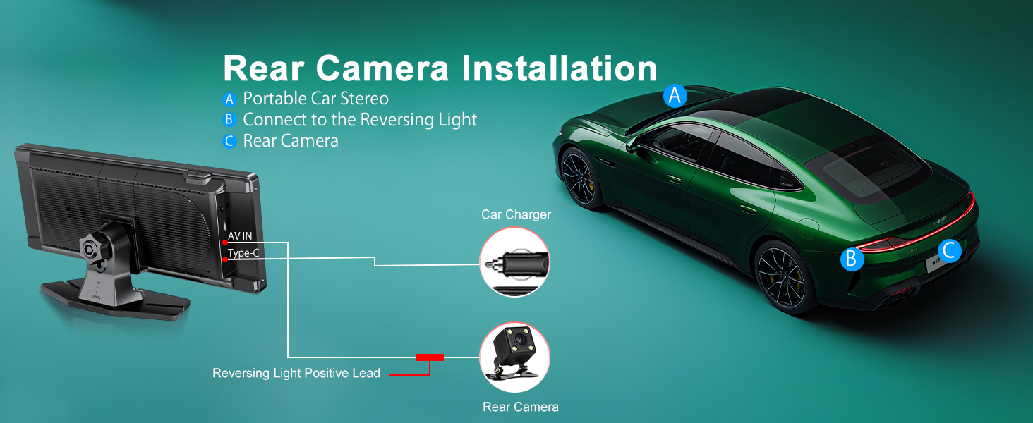 - 【HD 1080P Rear View Camera for Easy Parking with CarPlay Screen】Say goodbye to tricky parking problems! The carplay screen for car comes with a HD waterproof rear camera (170° wide angle) for a clear, real-time view of what's behind your car. Simply put it into reverse gear and the car play screen automatically switches to rear view mode and shows guide lines to help you park like a pro.