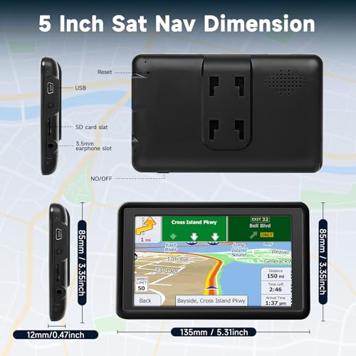 5 inch Sat Nav for Car, with UK Maps, Lifetime Updates, Support Postcode Search, Voice Directions, Speed Camera Alert, Lane Guidance Assist