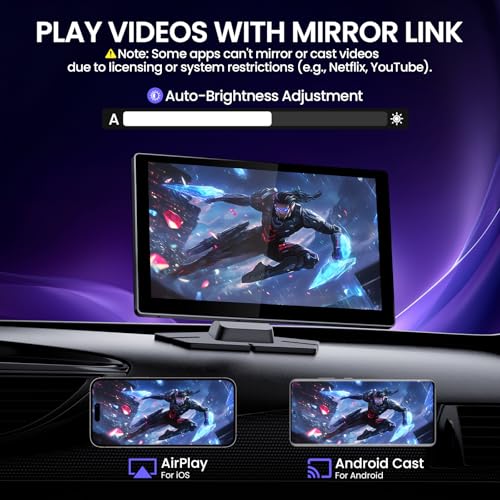 - ➤ 【Screen Mirroring Function】 With support for Airplay and Android Cast, you can easily mirror your smartphone’s screen to the Carplay display. Whether you’re on a road trip with family or friends, enjoy watching videos or playing games on the big screen in stunning HD.