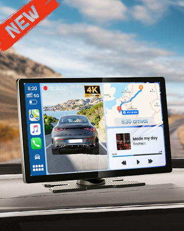 9'' HD Portable Carplay Screen for Car with 4K Dash Cam & 1080P Backup Camera DVR, Car Audio Receivers with Carplay & Android Auto Touch Screen, GPS Navigation, Mirror Link, Voice Control