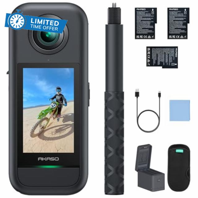 AKASO 360 Creator Combo – 360° Action Camera with 5.7K 360° Video, 72MP Photo, SuperSmooth Stabilization, Horizon Lock, AI Tracking, Invisible Selfie Stick, Touchscree