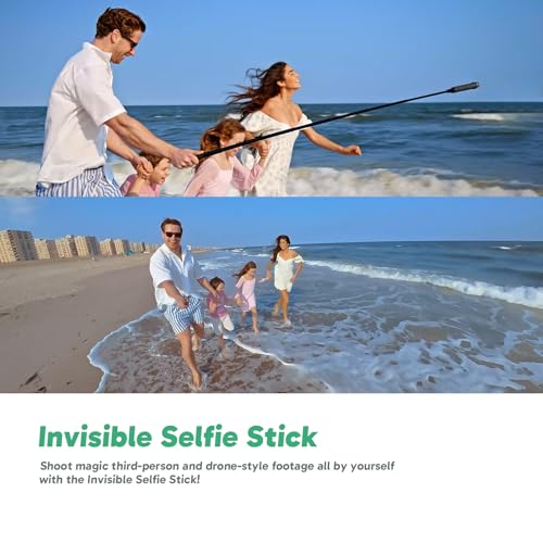 - Magic Invisible Selfie Stick: Capture unbelievable drone-like and third-person perspectives all by yourself! The selfie stick magically disappears from your footage. No photographer? No problem!