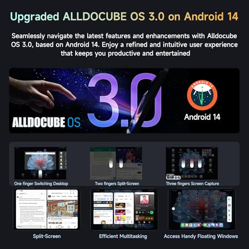 - 【Advanced Android 14 & ALLDOCUBE OS 3.0】The iPlay 60 Mini Pro tablet runs on Android 14 and the ALLDOCUBE OS 3.0, offering smooth performance and fast app launches. With GMS certification, you can download various apps from the Google Play Store. Enjoy multitasking with features like one-finger desktop switching, two-finger split-screen, three-finger screen capture, and handy floating windows. Experience a refined and intuitive user interface designed for entertainment.