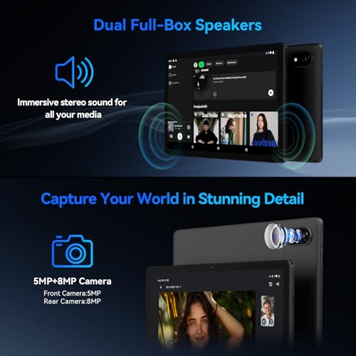 - 【10.1-inch 1280×800 IPS Display & Dual Speakers】The 10.1-inch iPlay 60S tablet features a 1280×800 resolution IPS display that provides crisp visuals and a wide viewing angle. This makes it ideal for watching movies or playing games, offering realistic visual effects in any scene. The dual speakers deliver immersive stereo sound, and with the 3.5mm headphone jack, you can choose between external sound or private listening. Enjoy exceptional audio quality at all times
