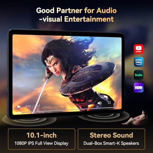 - ✨[10.1" Android Tablet + 1080P Display]✨See everything clearly on this 10.1 inch tablet's bright 1280*800 IPS HD screen. bright display with more vibrant colors, superb picture quality. Supports wireless projection and is equipped with dual cameras & stereo speakers. Gives you an outstanding audiovisual experience.njoy sharp images and true colors for streaming, browsing, or calls.