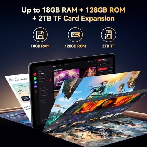 - ▶[18GB RAM + 2TB Expandable + 128GB ROM ] ▶This gaming tablet packs huge 18GB RAM (6GB+12GB achieved through expansion technology) and 128GB ROM storage with support expansion to 2TB for Micro SD. The extremely large RAM offers plenty of space for running apps as well as downloading and storing photos, movies and games. Switch apps smoothly, play lag-free, and crush heavy tasks. No more frustrating pauses during work or gaming.