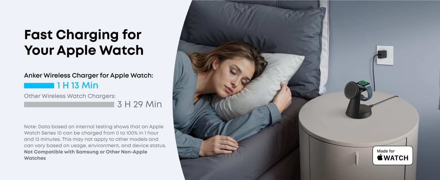 - Certified Fast Charging for Apple Watch: Boasts official certification, enabling you to power your Apple Watch Series 10 from 0 to 100% in just 1 hour and 13 minutes. (Note: Data based on internal lab testing; actual charging times may vary.)