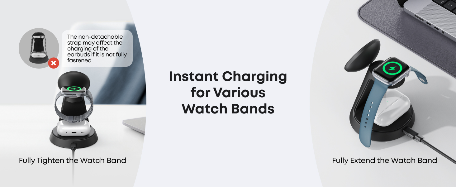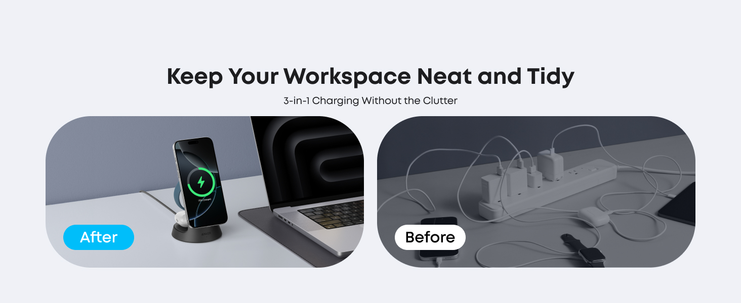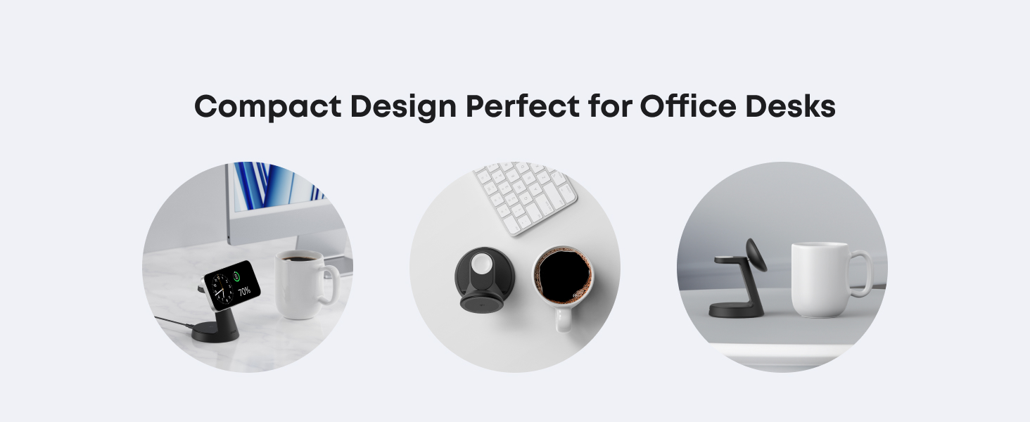 - Compact Charging for 3 Devices: Ideal for clutter-free workspaces, this compact charger fits ideally on any desk, powering everything from phones to watches.
