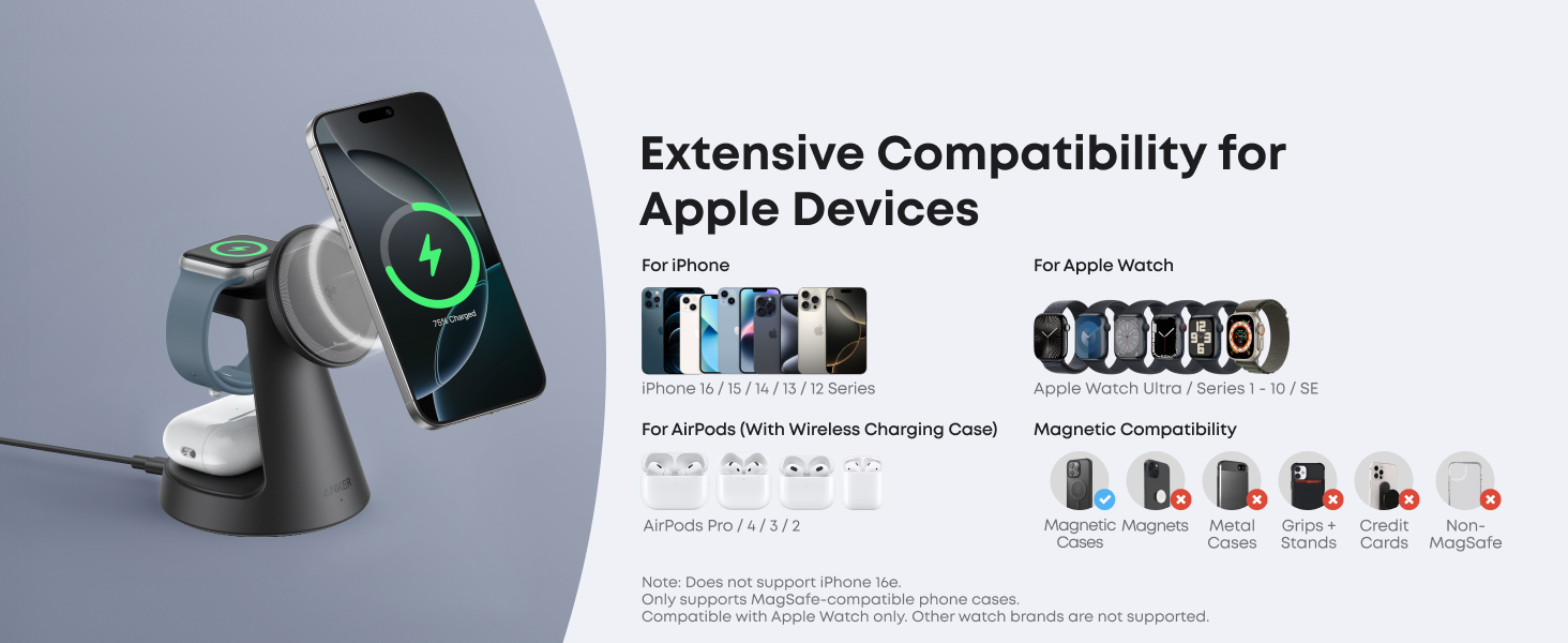 1. Only supports MagSafe-compatible phone cases and earbuds that support wireless charging.