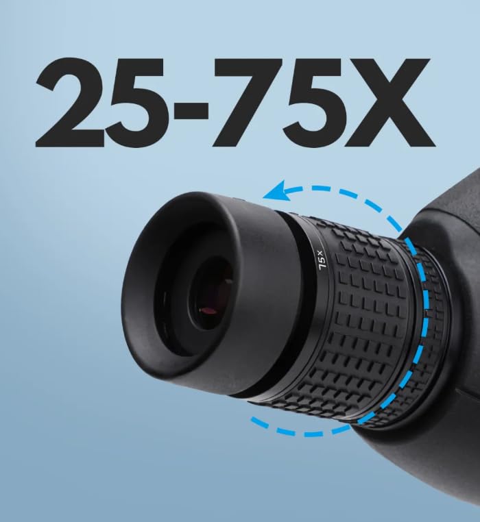 - 25–75X Stepless Zoom Easy zoom adjustment without lens changes – perfect for close and distant observations.