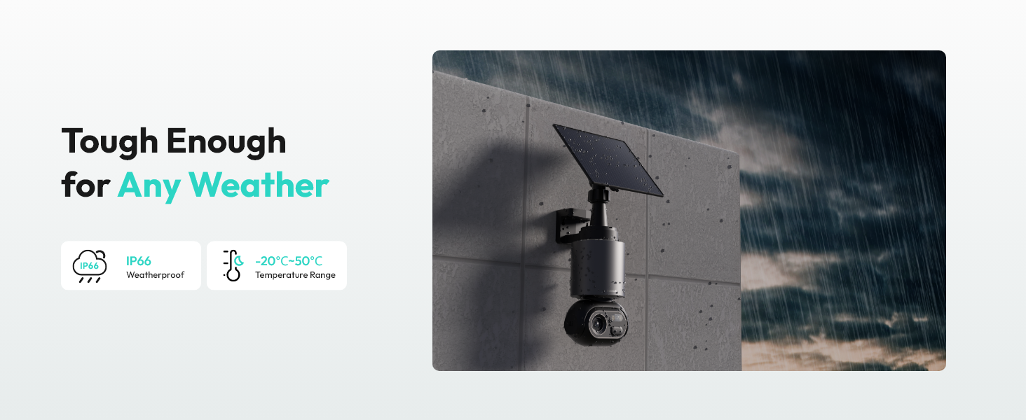 10000mAh large battery capacity and 5W fast-charging solar panel (in sunny conditions, a half-hour solar charge can power the security camera for a full day. The battery can also ensure normal use of the security camera on rainy days, practically ensuring constant power)