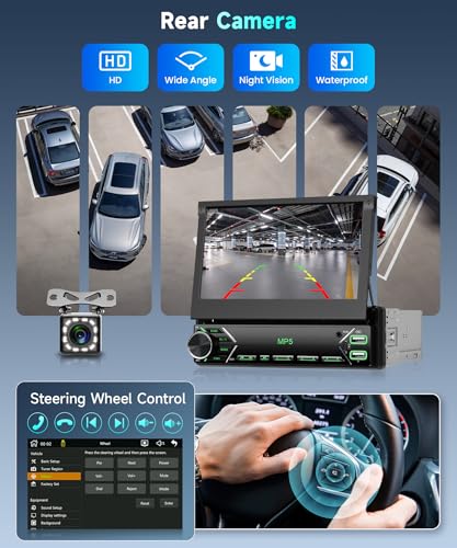 - 1 Din Universal Fit with 7-inch Electric Touchscreen Designed for UK vehicles with standard single-din dash kits, this car radio (177x50x157mm) features a 7-inch Electric flip-out touchscreen with 1024×600 resolution for vibrant visuals. The screen tilts to reduce glare and adjusts to your viewing angle, while 7 customizable backlight colors let you match your car’s interior. Front-facing USB/Type-C ports enable fast phone charging on the go.