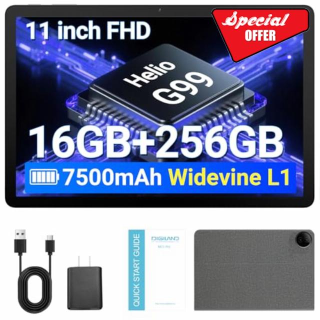 - 【11 inch Tablet+ 90HZ Display + Widevine L1】DigiLand M11 Pro 11 inch tablet features a 11-inch HD IPS screen Full HD 90Hz display, delivering a cinema-grade viewing experience. Additionally, the M11 Pro is Widevine L1 certified, allowing you to watch the latest shows in 1080P resolution on Netflix(True 1080p resolution), YouTube, HBO, or Amazon Prime Video, whether you're binge-watching or a loyal fan. The 90Hz refresh rate ensures smooth and seamless performance, keeping the tablet in sync with your thoughts and enhancing your quality of life.