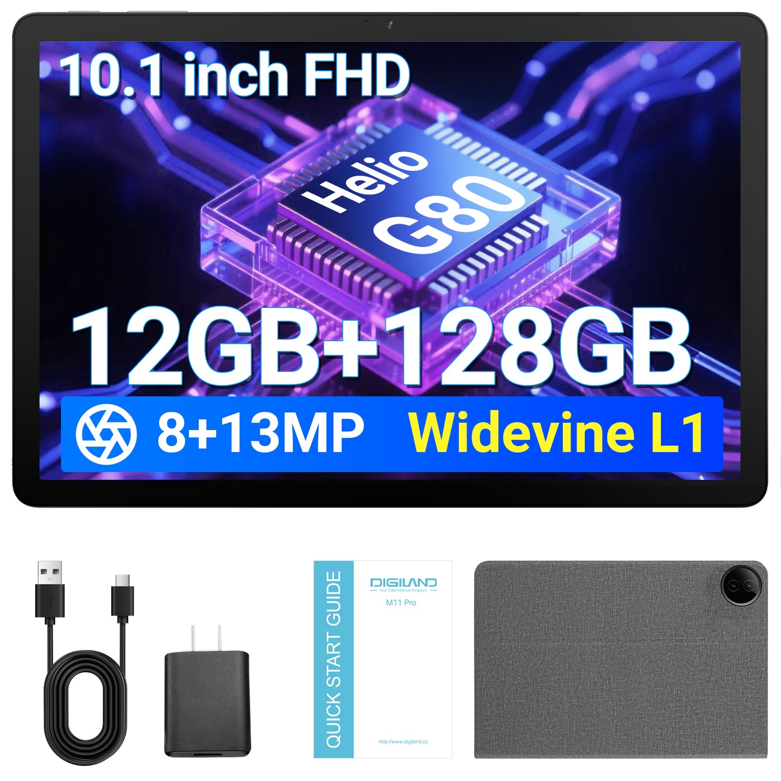 DigiLand Android 14 Tablet,10.1 Inch Tablets with Protective Case, Octa-Core Processor, 8MP Front+13MP Rear Camera, 6000mAh,Bluetooth IPS Tablets, Wi-Fi Tablet