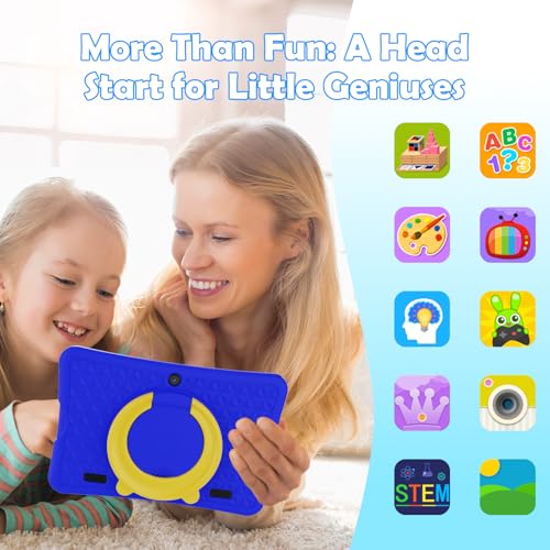 - 【Free Gift Kid-proof Silicone Case】: The slim and compact body makes it easy for even younger children to take it with its own protective holster for durability, parents would not worry about the drops by accident, And the adjustable plastic stand which frees the hand of holding the tablets. You can download different apps YouTube, Netflix from the Google Play store, Kids could enjoy the tablet easily.