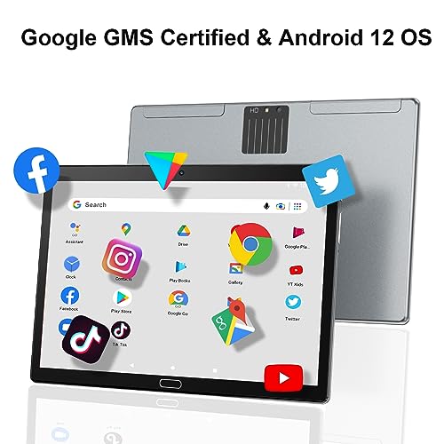 - 【Android 12 & 64 GB】The 10" tablet is Google GMS certified and with the latest Android 12 OS, it runs 25% faster for smoother work or gaming. Built-in 64GB large capacity storage for daily work data or photo and video storage, record the good life at any time. Additional support for up to 1TB TF card expansion (not included)