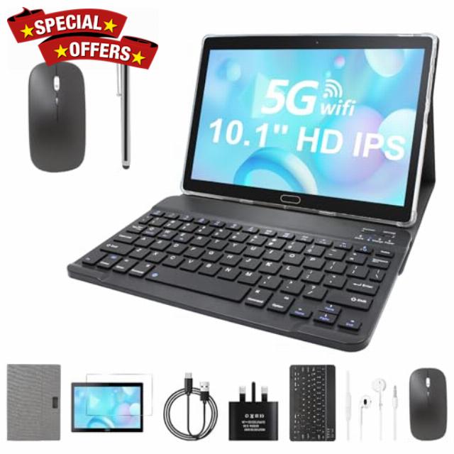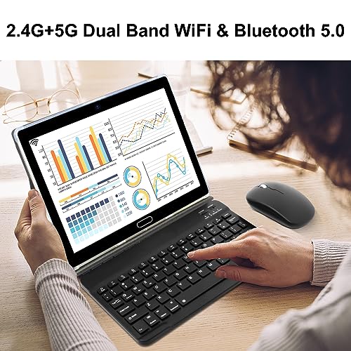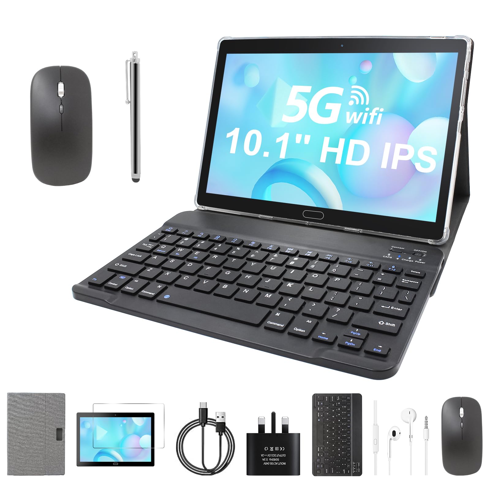 EagleSoar Android 10 inch 64GB Storage 1TB TF Expansion, Dual Camera, 10.1'' FHD+ IPS, Support 2.4G&5G WiFi, Bluetooth 5.0, GPS with Wireless Mouse, Keyboard, Pen, Tablet Case