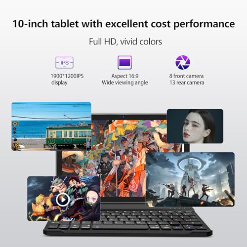 - 【16GBRAM + 128GB ROM + 1TB Expand】:The Android tablet has 16GB ( 8GB Physical + Expanded 8GB Virtual ) RAM for smooth multitasking, 128GB ROM internal storage and expandable storage up to 1TBWhich makes it can stores a large number of e-books, movies,music, photos, games, files and more apps. It is Google GMS certificated, you can download your favorite APPS from Google Play Store such as Netflix,Tik Tok ,Facebook, Twitter, YouTube,etc. Forget storage worries, enjoy your tablet to the fullest with more multimedia and efficiency.Whether you are working, studying, or entertaining, this tablet with keyboard can meet all your needs.