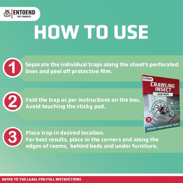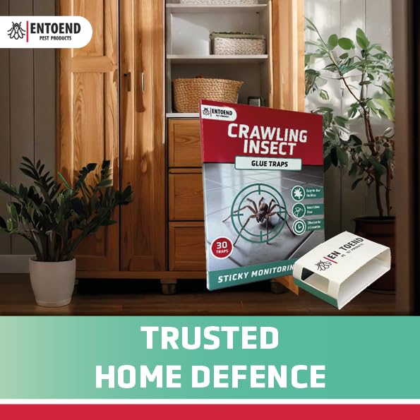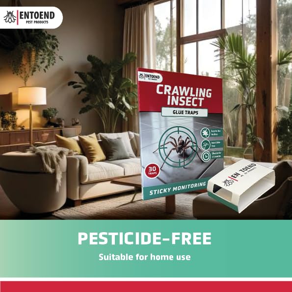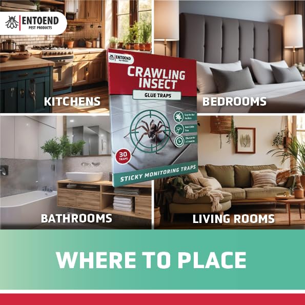 ENTOEND Crawling Insect Glue Traps | Pack of 30 | Sticky Indoor Spider Catcher | Easy to Use Adhesive Paper Trap to Catch Spiders, Bedbugs, Carpet Beetles, Silverfish, Cockroaches and Other Insects