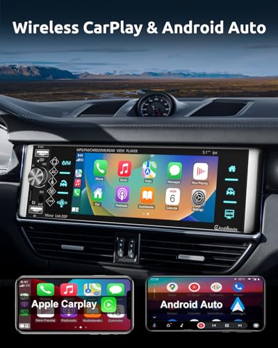 With1 DIN 5.1 – inch 1120 x 480 2.5D IPS HD – touchscreen with wired and wireless screen mirroring for iOS and Android smartphones to display videos, images, and other content.