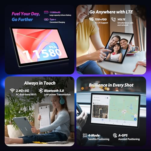 - 【4G LTE + 2.4G/5G Wi-Fi + 36GB RAM + 256GB ROM】The 4G LTE function allows users to maintain a high-speed Internet connection while on the move, such as when traveling or in areas without WiFi coverage. 2.4G/5G Wi-Fi offers connection options in areas with WiFi coverage, such as at home, in the office, or in public places. Data transfer is possible at high speeds. 5G Wi-Fi offers faster wireless connection speeds. The tablet is equipped with 36 GB RAM and 256 GB ROM. Whether at work, studying, or entertainment, it is a smooth experience.